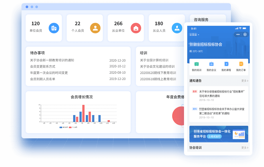 安訊協(xié)會一體化服務(wù)平臺,是按照“互聯(lián)網(wǎng)+社會組織”的理念,采用 “云計算、大數(shù)據(jù)”等先進信息技術(shù),立足協(xié)會服務(wù)會員、規(guī)范市場秩序、開展行業(yè)自律等需求,建立的一體化管理與服務(wù)平臺,集成會員、從業(yè)人員、從業(yè)單位管理,通知、培訓、會議、咨詢、資源、直播服務(wù),以及門戶網(wǎng)站、移動應(yīng)用,實現(xiàn)協(xié)會各業(yè)務(wù)數(shù)字化整合,全面提升各方獲得感,為協(xié)會服務(wù)國家、社會、行業(yè)提供全面的信息化支撐。